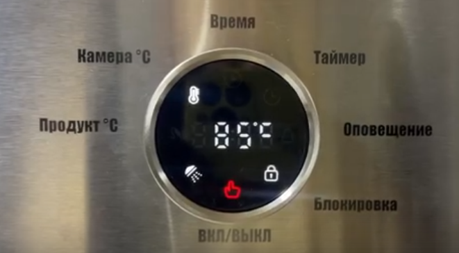 Управление производится только вращением колеса. Индикация на экране показывает, какие агрегаты термокамеры будут задействованы в выбранном режиме.
