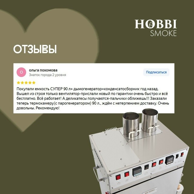 Предоставляем клиентам доступ к нашему чату единомышленников в копчении. Узнавайте рецепты и тонкости использования оборудования!